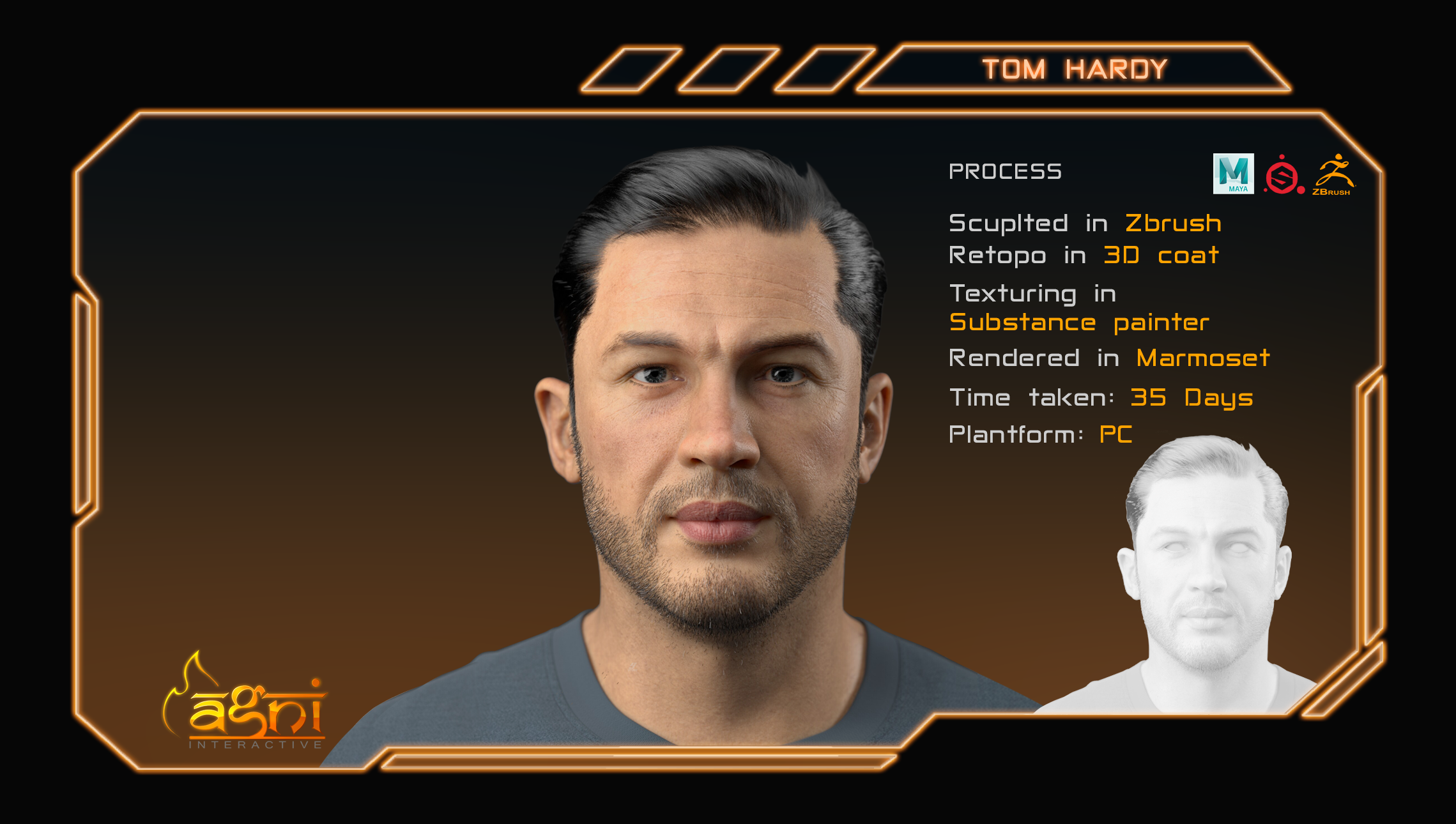 Presenting 'Tom Hardy,' a hyper realistic 3D model with exceptional detail and lifelike textures, perfect for showcasing character artistry and portfolio excellence.